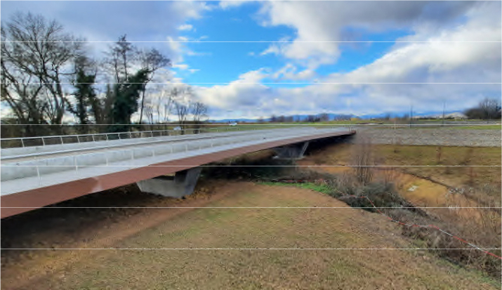 Maîtrise d’œuvre complète – Ouvrages d’art ZAC Lybertec (Rhône) Construction d’un pont route et de 3 passerelles sur la Mézerine